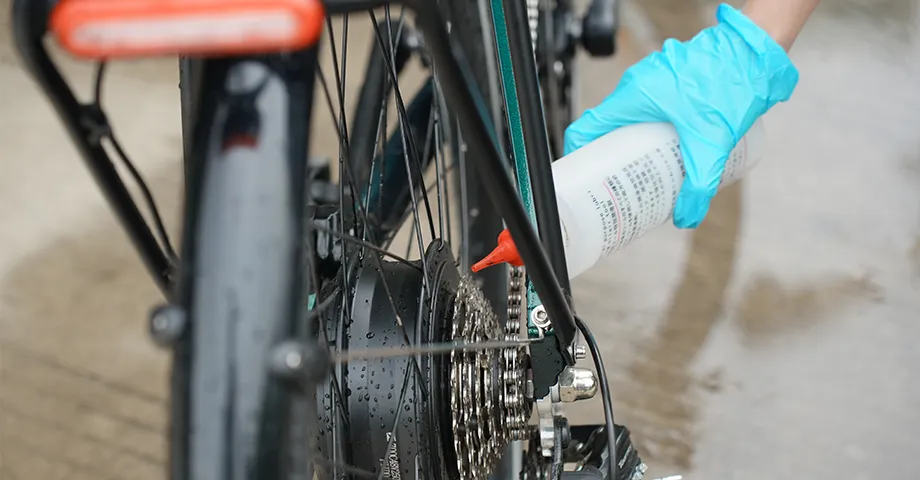 - Xịt đều dung dịch tẩy dầu (degreaser) lên xích.