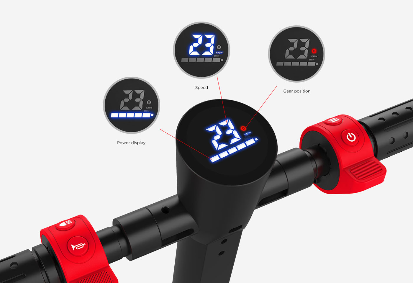 - Màn hình LCD hiển thị tốc độ và dung lượng pin rõ ràng
