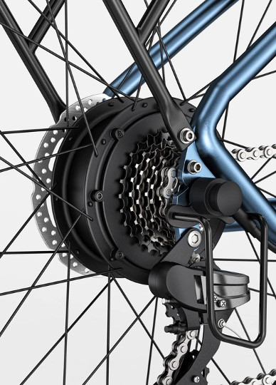 Giá trị nhất của xe đạp trợ lực điện Engwe P26 chính là động cơ trục sau 500W. Động cơ này đủ mạnh để xe đạt vận tốc tối đa khoảng 35km/h, giúp bạn di chuyển nhanh chóng trong thành phố hoặc leo dốc cầu vượt, dốc nghiêng 7 độ mà không gặp khó khăn.