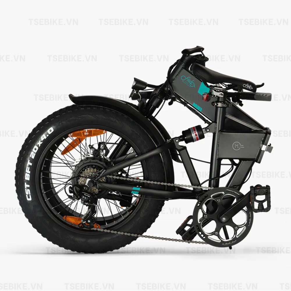 Điểm làm nên sự khác biệt hiếm có của Fiido M21 chính là khả năng gấp gọn linh hoạt. Dù sở hữu khung xe chắc chắn và bánh béo mạnh mẽ, bạn vẫn có thể dễ dàng gấp gọn xe để bỏ cốp ô tô hoặc cất giữ trong không gian nhỏ, kết hợp hoàn hảo giữa sức mạnh của xe địa hình và sự tiện dụng của xe đô thị.